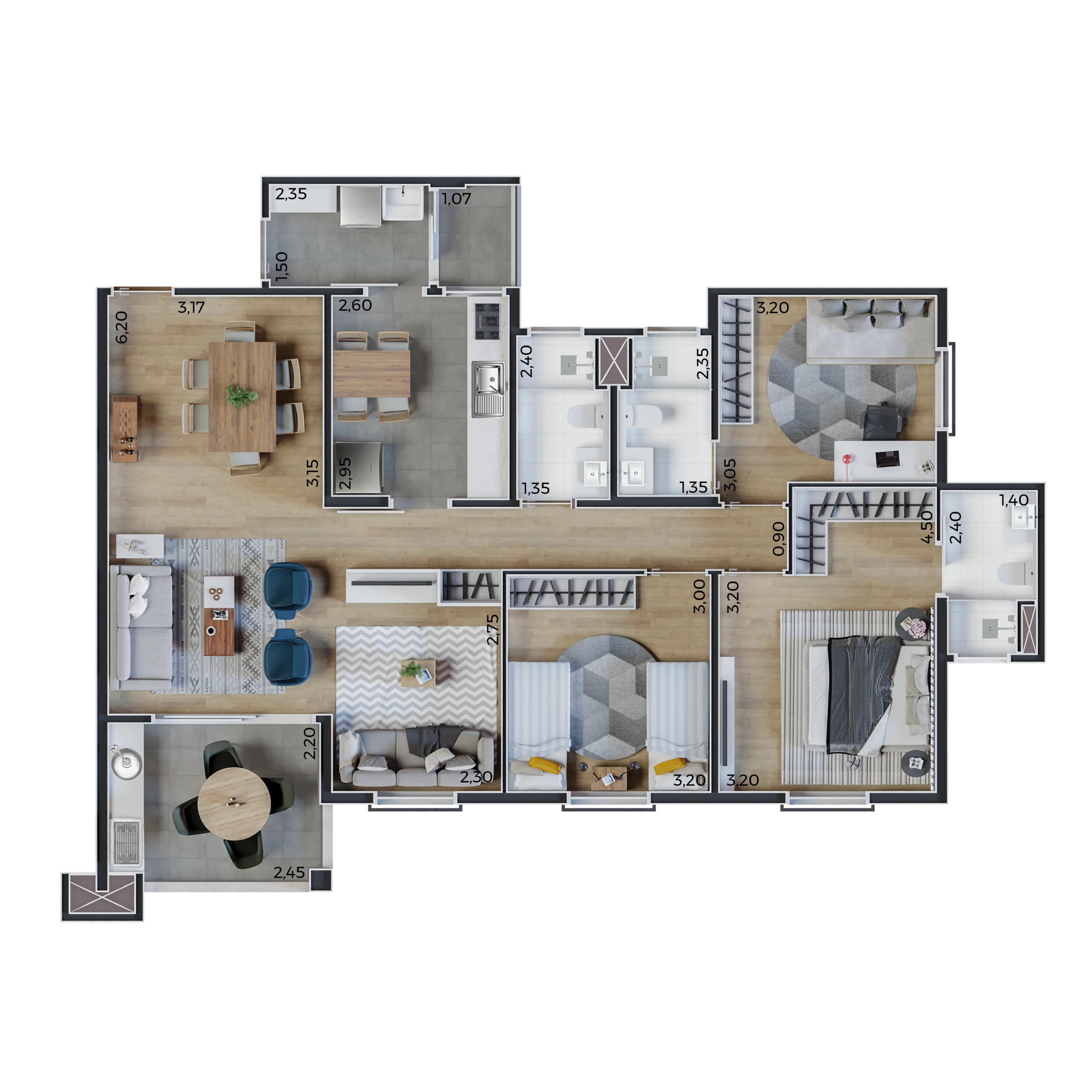 Um empreendimento que une espaço, conforto e praticidade para sua família. Com apartamentos de 108 m² úteis, o Rio da Prata oferece 3 ou 4 dormitórios, sendo 2 suítes, além de 3 vagas de garagem. São 60 unidades distribuídas em 15 andares, com 4 apartamentos por andar, garantindo exclusividade e privacidade em cada detalhe.
